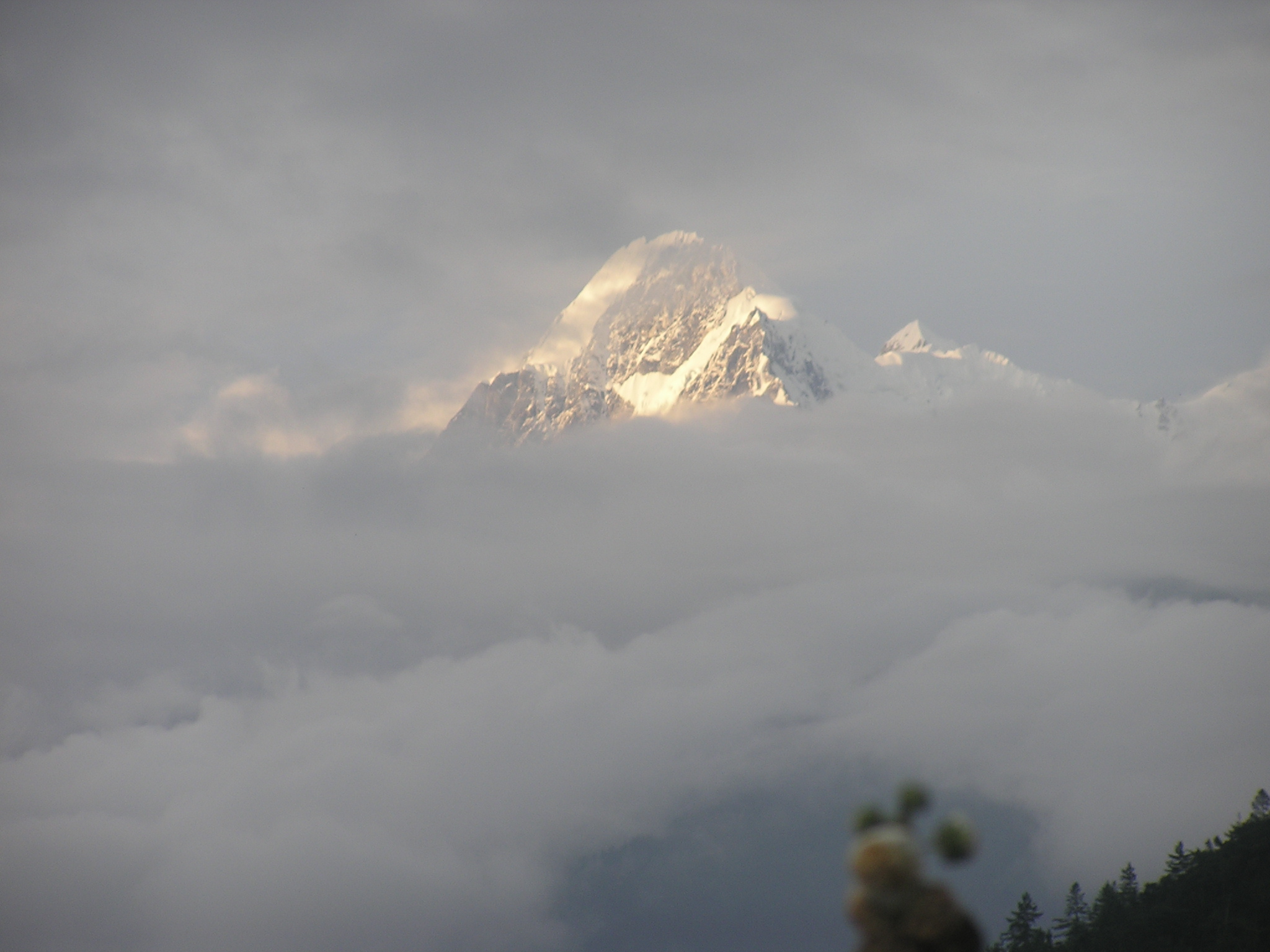 So at the end of probate year and after a month in Koh Samet I was going to the Himalayas and was going to spend time on a mountain. Not going to live rough, I found a tour guide who would drive me up and then find an isolated guest house/family where I could stay - the guide said he could arrange that. I had a huge backpack, and there was this wiry little guy who was going to carry it (the bag was a foot taller than his back packed for 3 months with computer) - the guide insisted that was part of the deal I had to pay for. We reached Dhunshe, a tourist spot with a view of Everest, and I was dumped at the hotel. I walked round Dhunshe - so beautiful, meeting the ragamuffin with her tame crow that she wanted me to photograph for money; she was lovely but I always resisted tourism ploys. Dhunshe was wonderful and I was looking forward to walking higher away from people, and finding an isolated house where I would be fed. And could wander the hills.
